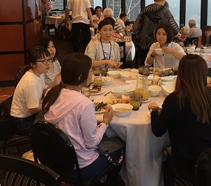 【実習を終え、食事をしながらディスカッションする参加者たち】