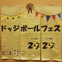 今回の「ドッジボールフェス2020」は、“協力して、やり遂げる”をテーマに台東区の下谷こどもクラブ・台東入谷こどもクラブ・大正小学校放課後子供教室・竹町こどもクラブ・松葉こどもクラブと千葉県野田市立二川学童保育所の放課後児童支援員(以下、支援員)が企画。二川学童保育所は1月7日より小学校の授業が始まることもあり当日は不参加となりましたが、当日に向けて、ルールや進行内容の決定、看板の装飾など、育成の空き時間を活用して準備を進めました。当日の司会進行、審判、救護など、運営もすべて支援員が協力し合って実施しました。