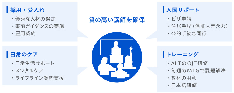 ALTが安心して学校生活や指導に集中できるように、弊社では様々な手厚いサポートを実施しています。