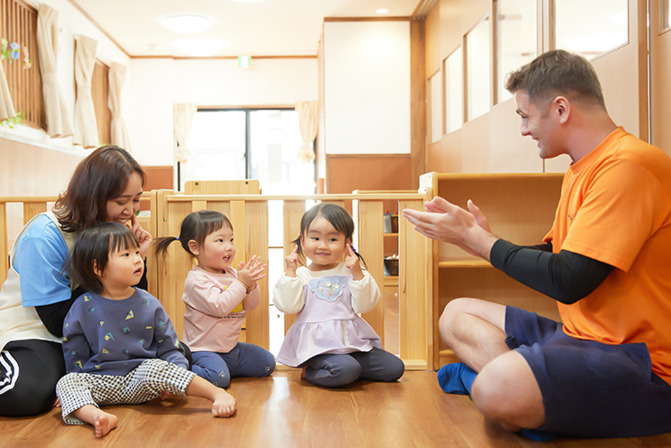 英語を学ぶことが最終目的ではなく「イマージョン教育※」の考え方をベースとして母国語としての日本語を大切にしつつ、英語環境の中で保育活動をすることで日常的な生活の中から知識の習得を目指します。乳幼児に合わせて「たのしく」学べることが、こどもたちの意欲につながっています。