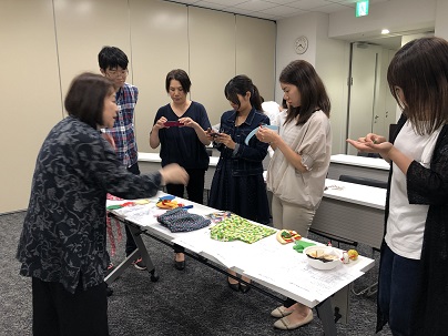 研修2日目は、作ったおもちゃを使って自園で遊んでみてどうだったか、こどもたちの反応や遊んでみた感想などを話し合いました。参加者にとっては、おもちゃを作るだけでなく、こどもたちが遊んでいる様子を観察し、保育のあり方を考えるきっかけとなったようです。研修の最後には、スマイル工房の見学も行い、受講者にダイバーシティーを体感してもらいました。