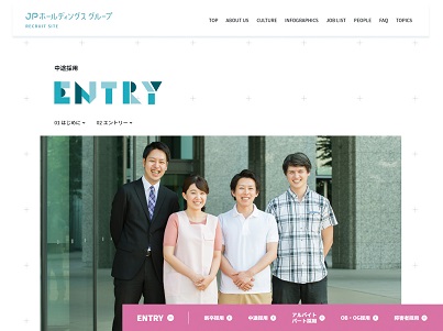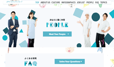 今まではグループ会社の日本保育サービスのホームページの1コーナーとしてリクルート情報を発信していましたが、リクルートサイト用のドメインを取得し、グループの採用情報を集約。