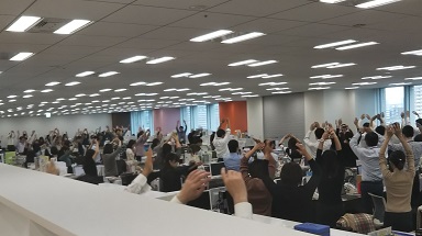 【東京本部では始業時と15時にラジオ体操を実施】