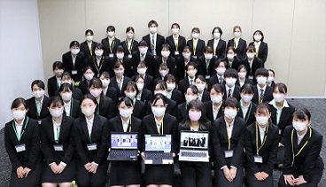 また、当日は、会場に来られない内定者向けに、オンラインで式の中継を実施。Web会議システムを通じて参加した内定者たちも、「オンライン参加だったが、実際に会場にいるような感覚だった。レクリエーションのクイズでは、会場の同期内定者とも話すことができ、リラックスして楽しむことができた」と笑顔を見せていました。
