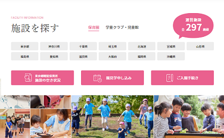 日本保育サービスが運営する約300の施設ページへの入り口をトップページに設けました。