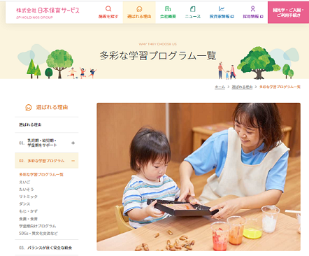 日本保育サービスが提供する多彩な学習プログラムをまとめて紹介するページを設けました。
