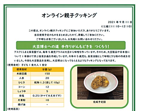 【アスクくらまえ保育園の「オンライン親子クッキング」】