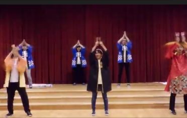 アスク共和東保育園は、先生たちが日本三大よさこい祭りである愛知県の「にっぽんど真ん中祭り」の「総踊り」を踊りました。それぞれ少しずつ違った踊りはとても華やかでした。