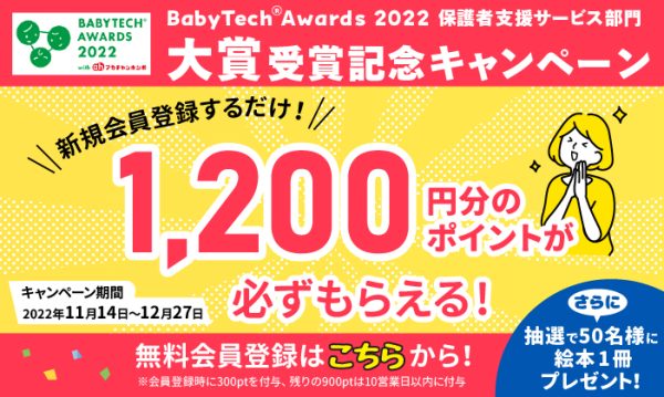 「BabyTech® Awards 2022」保護者支援サービス部門大賞受賞キャンペーンとして、2つのキャンペーンを開催しています。
