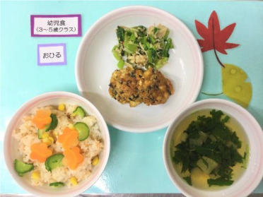 提供した献立は、JPホールディングスのグループ企業で、給食の請負事業を行う株式会社ジェイキッチンに所属する管理栄養士が監修し、各園の栄養士・調理師が調理を担当しました。