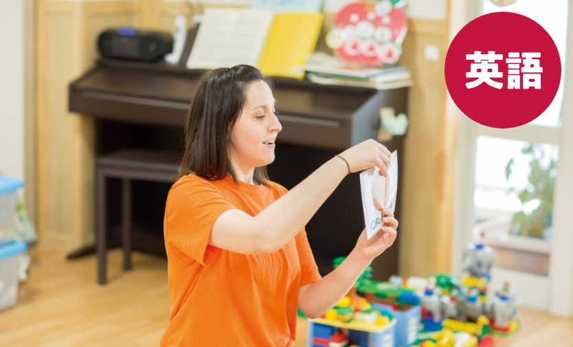 楽しい歌や絵本を通じて英語に親しむ時間。「英語って、たのしい!」こどもたちにそう思ってもらうことを大切にしています。